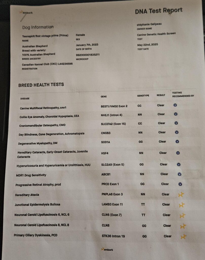 - Mère : Group placing CH Dixie Harmony de La Genevoise
